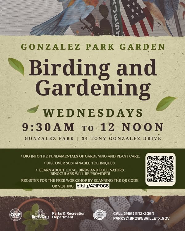 Don’t miss this chance to deepen your connection with nature while learning valuable skills that benefit both your personal growth and the local ecology. Join the Birding and Gardening sessions at Gonzalez Park Garden and become a part of a movement that celebrates the beauty of the Rio Grande Valley.